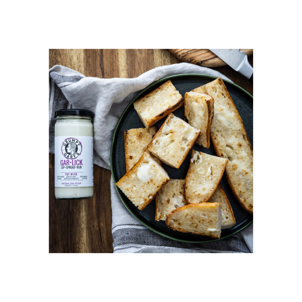 Grumpy Gary's Gar-Lick Dip Spread Rub is a smooth and creamy vegan dip bursting with the rich, bold flavor of garlic - so much so that you might want to keep a pack of mints handy (or not, if you're a true garlic lover). But the best part?