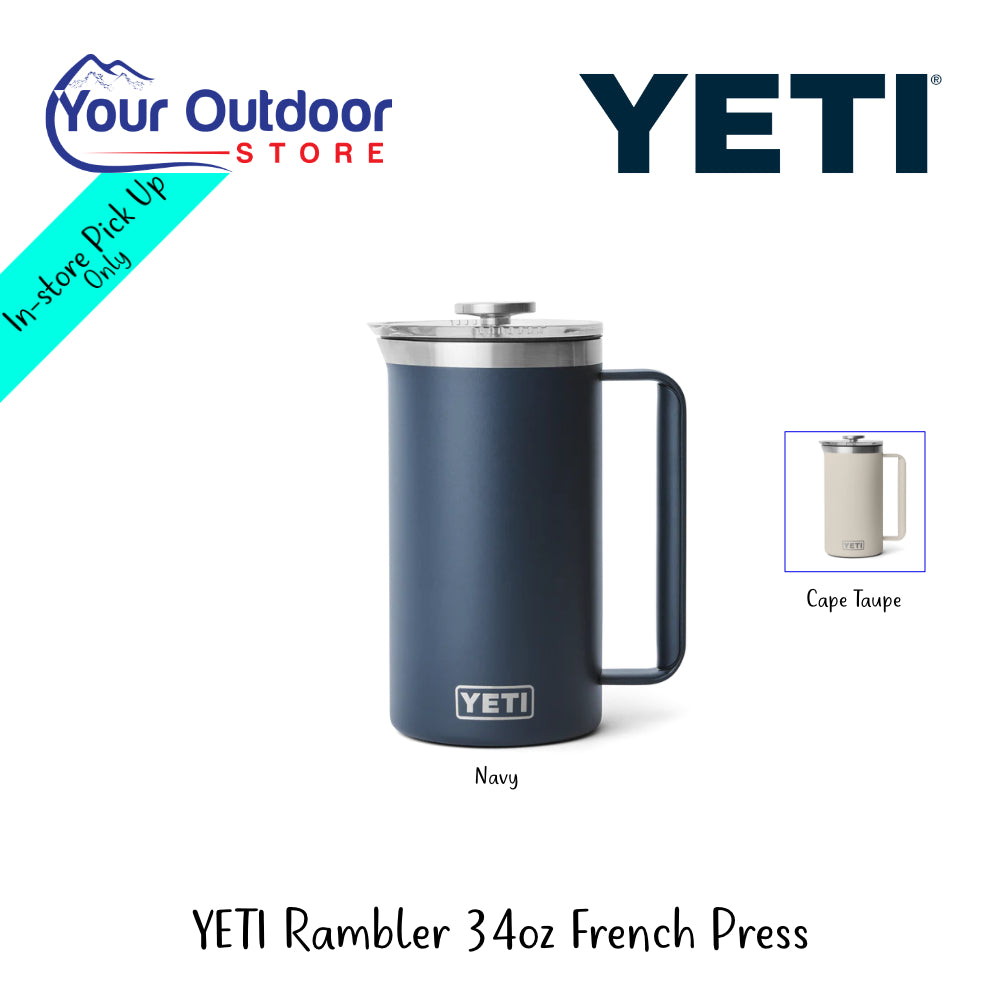 YETI Rambler 34oz French Press YETI Sale! from $160.00 AUD /per Taxes included in the price Size 1 Litre Colour Cape Taupe Navy Produc variants 1 Litre / Cape Taupe 1 Litre / Navy Couldn't load pickup availability Refresh Please Note: This product is only available for in-store collection at our store in Cooma NSW and will not be shipped Description Get a perfect pour and then a couple more with the incredibly tough YETI French Press. Features Makes coffee for you and a few. Double-wall vacuum insulation. Dishwasher safe. Twist-to-lock 34 oz French Press™ Lid included. Specifications External Dimensions: H 20.8 X 15.7 W CM Empty Weight: 1.2 kg Capacity: 34oz - 1L Qty available: 2 SKU:888830344415